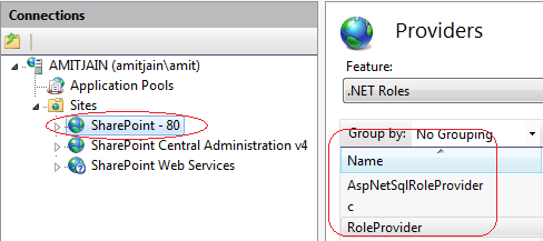 Select Sharepoint - 80 application from connections and Double click on .NET Roles